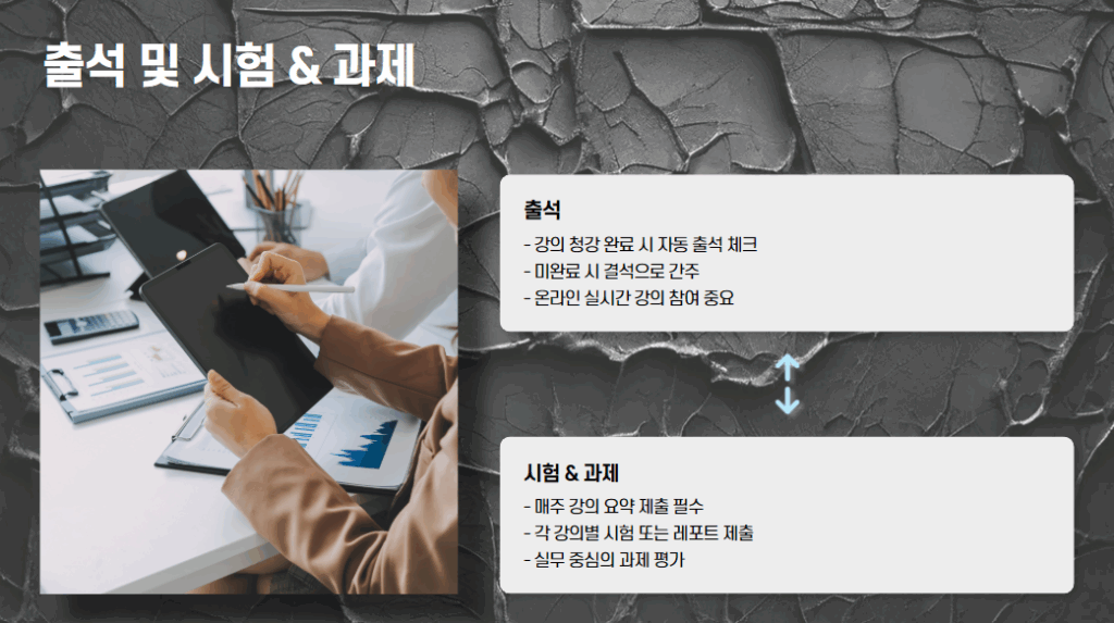 현장에서 바로 적용 가능한 실전 중심 강의라 정말 유익했어요. 이론만 가르치는 게 아니라 ‘현실적으로 어떻게 해야 하는지’를 알려줘서 실무자들에게 강추합니다.